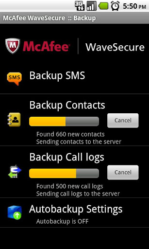 McAfee WaveSecure protects your Android device in the event of loss of theft by secring and tracking down your personal data and files. It can remotely lock your device from the web or via SMS. It back ups your data to the cloud.